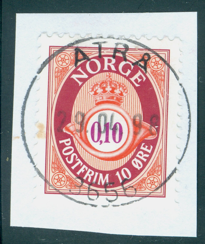 Postkontoret 3656 ATRÅ ble nedlagt fra 2.6.1998. Ingen endring i postadressen etter nedleggelsen. Sirk. 8, 24.4.1998.