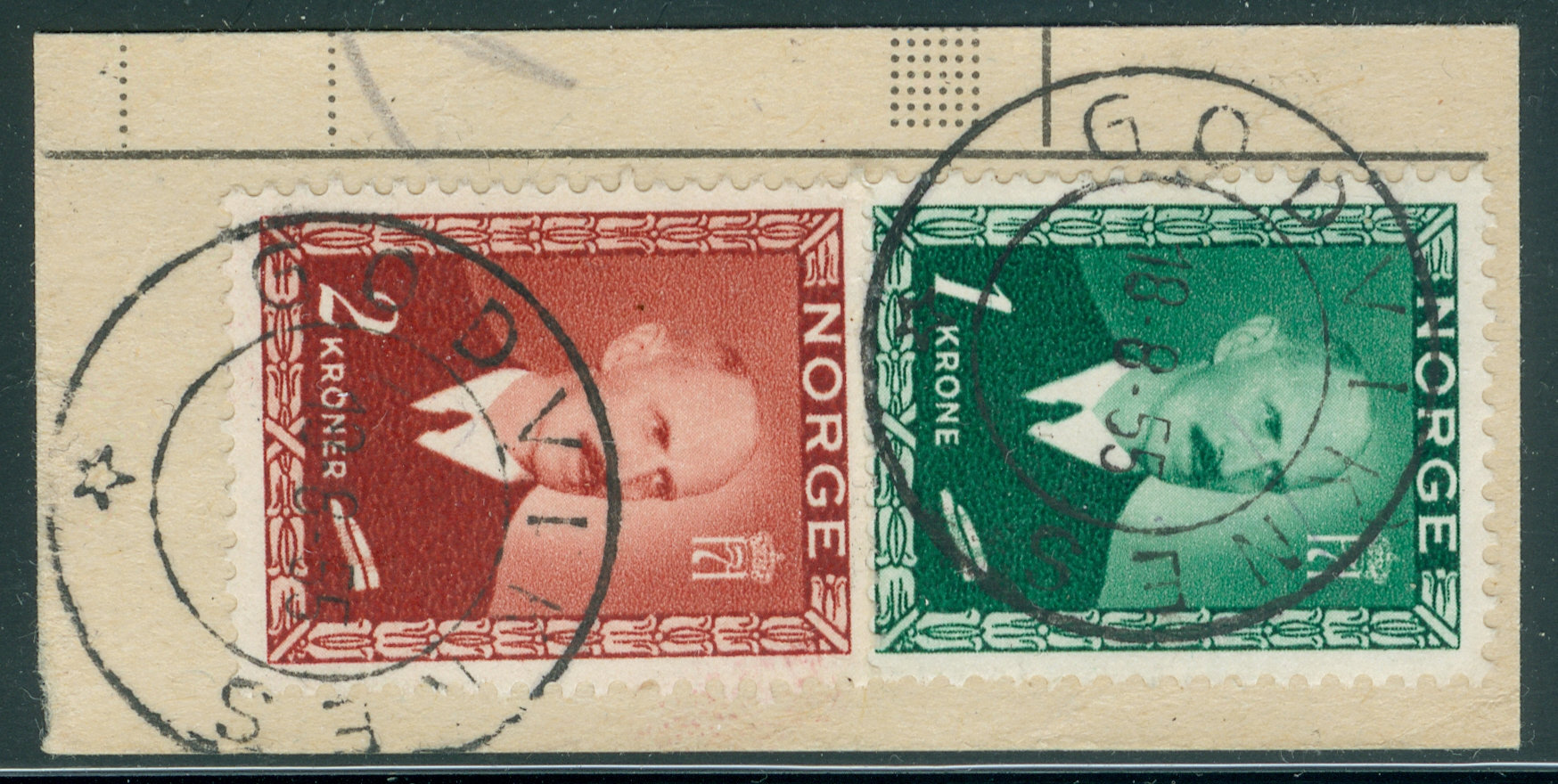 Datostempel av 2-rings type med tverrstreker og åpen stjerne ble tilsendt ved opprettelsen.