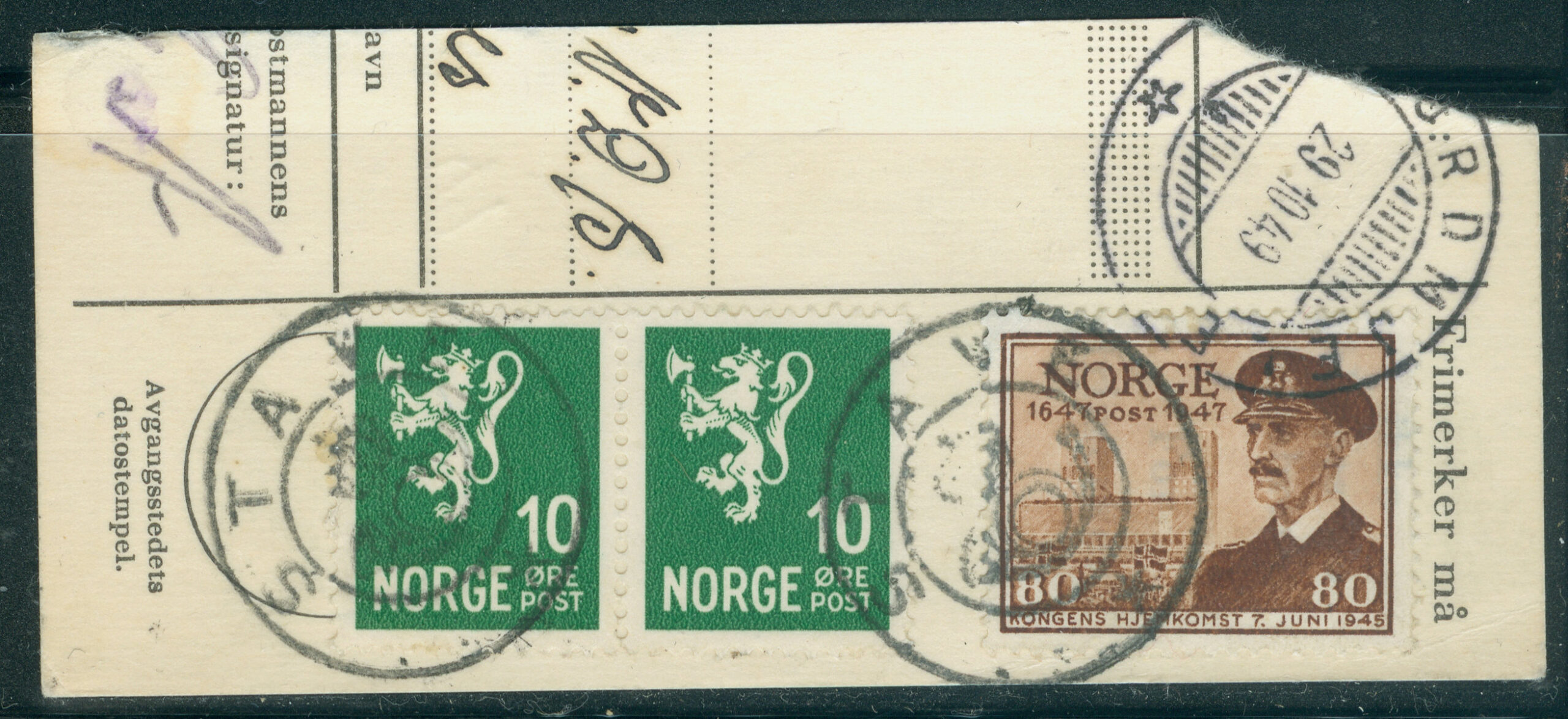 Brevhuset nyttet først 4-rings kassasjonsstempel nr 16 og fikk tilsendt "Kronet posthorn"-stempel i januar 1935.
